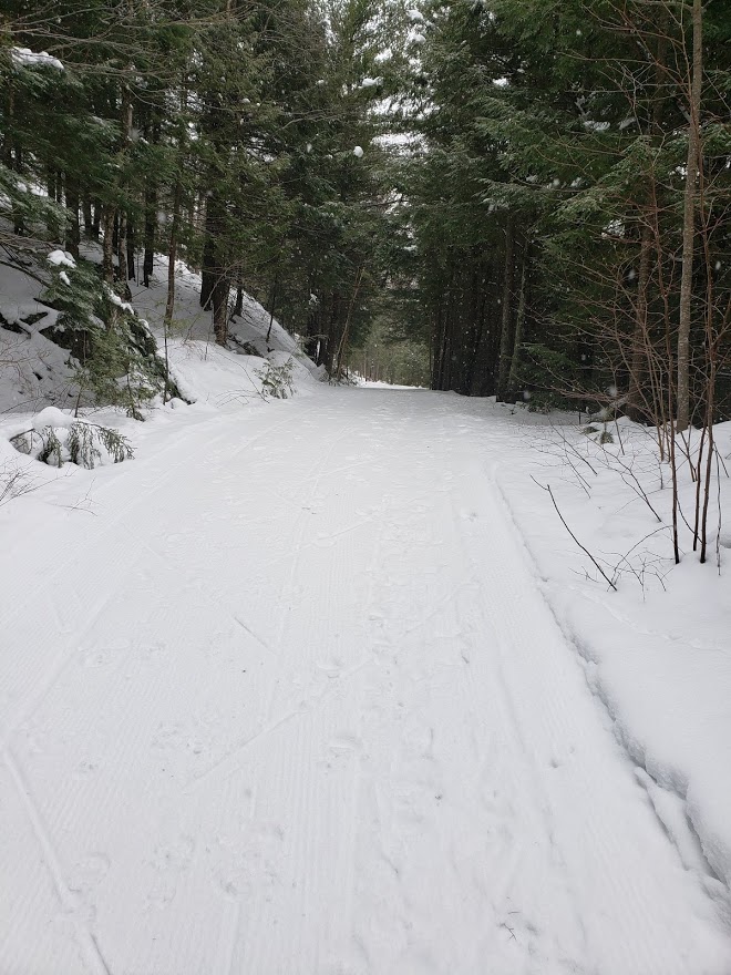 The trail was really nice two-track with lots of room to walk. There was a little ice and softer spots, but nothing too difficult at all. The scenery was absolutely breathtaking though! The trail parallels the river for the entire route — there is never a time that you cannot see or hear the river.