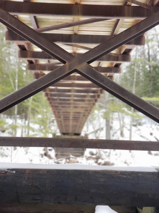 Making our way back to the Doughboys Trail and the car there are numerous overlooks and one more bridge across the Tyler river that has an awesome view down into the gorge. It really is breathtakingly beautiful in the winter. You can see all the rushing water and the ice and air bubbles moving under it all and just thank God for the beauty of His creation.