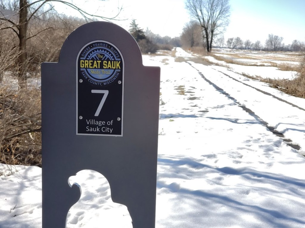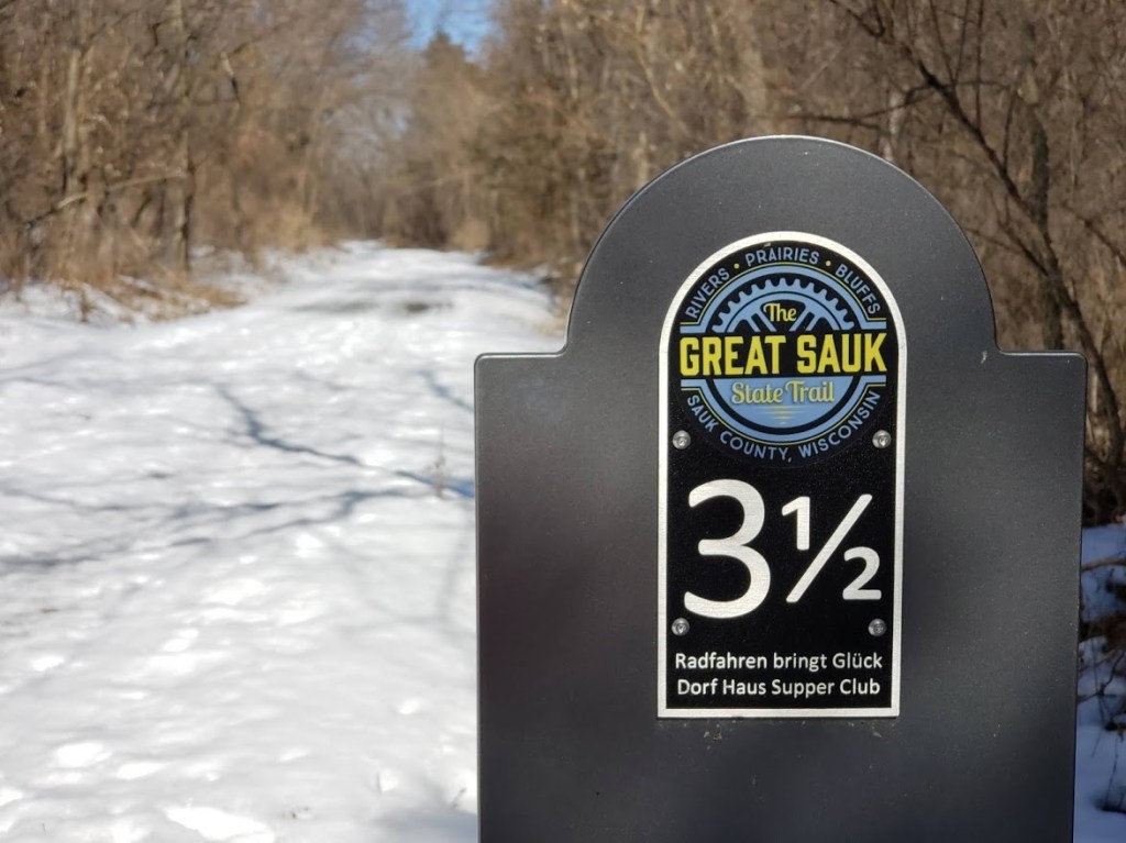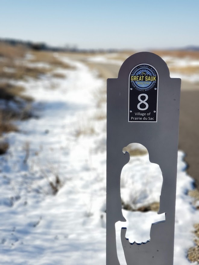 “Pre-Spring” continues in Wisconsin and so does our loss of appetite for mud and snow. But Mike’s appetite for Prime Rib helped with the planning for this Saturday. It is the first Saturday of the month and any real Prime Rib fan knows that means “All You Can Eat” Prime Rib at Arthur’s Supper Club in Spring Green, WI. We did #SupperClubSaturday there once before and Mike could not stop talking about how good it was, so…..we’re heading back. Searching for paved trails around Spring Green, Mike came across the Great Sauk State Trail in Sauk Prairie, WI. This was a trail that we never knew existed. Even more interesting is that the northern end of the trail was in the Sauk Prairie Recreation Area — another place we never knew existed even though we have driven past it many, many times. This sounds like a #SplorinSaturday adventure in the making!!! Researching the trail we found it is about 10 miles long and stretches from right in downtown in Sauk Prairie all the way out almost to Devil’s Lake State Park. The only problem with the trail is that it is not plowed in the winter (or pre-spring). The weather the whole week before we were going was very warm with temperatures in the mid-40s — surely that meant the snow would be melted, right? Mike reached out to a “Friends of the Great Sauk Trail” Facebook group to get some more information on where to park, etc. He received a couple of replies including one on Friday afternoon where one of the members drove out to see what the end of the trail looked like where we were starting — they said the trail was partially snow-covered, but that we could get to where we wanted to start — Splorin’ is on!!!