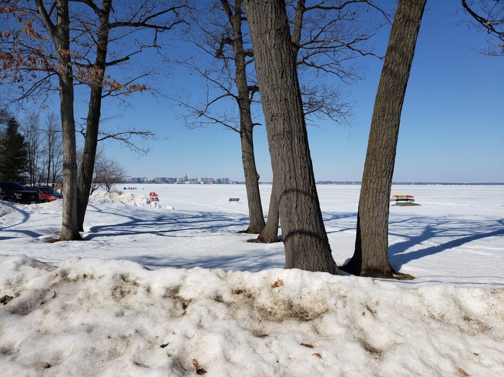 This was a really nice and easy walk where, once again, we could avoid some of the nasty “pre-spring” trail conditions. When not walking on the sidewalk or streets, the trail is fully paved. It winds its way around the lake, sometimes close to it, sometimes far from it, but it was a lovely “pre-spring” day to enjoy the weather and some fresh air!