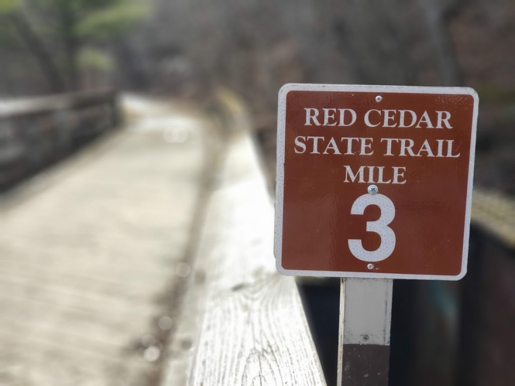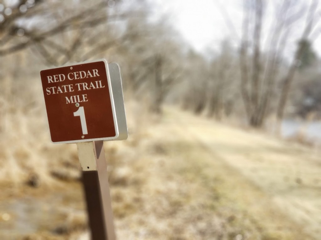 The Red Cedar State Trail is a 14.5 mile trail that stretches from Dunnville to Menomonie. Since we were doing out and back hiking, we started about halfway up the trail in Downsville and hiked to Menomonie.