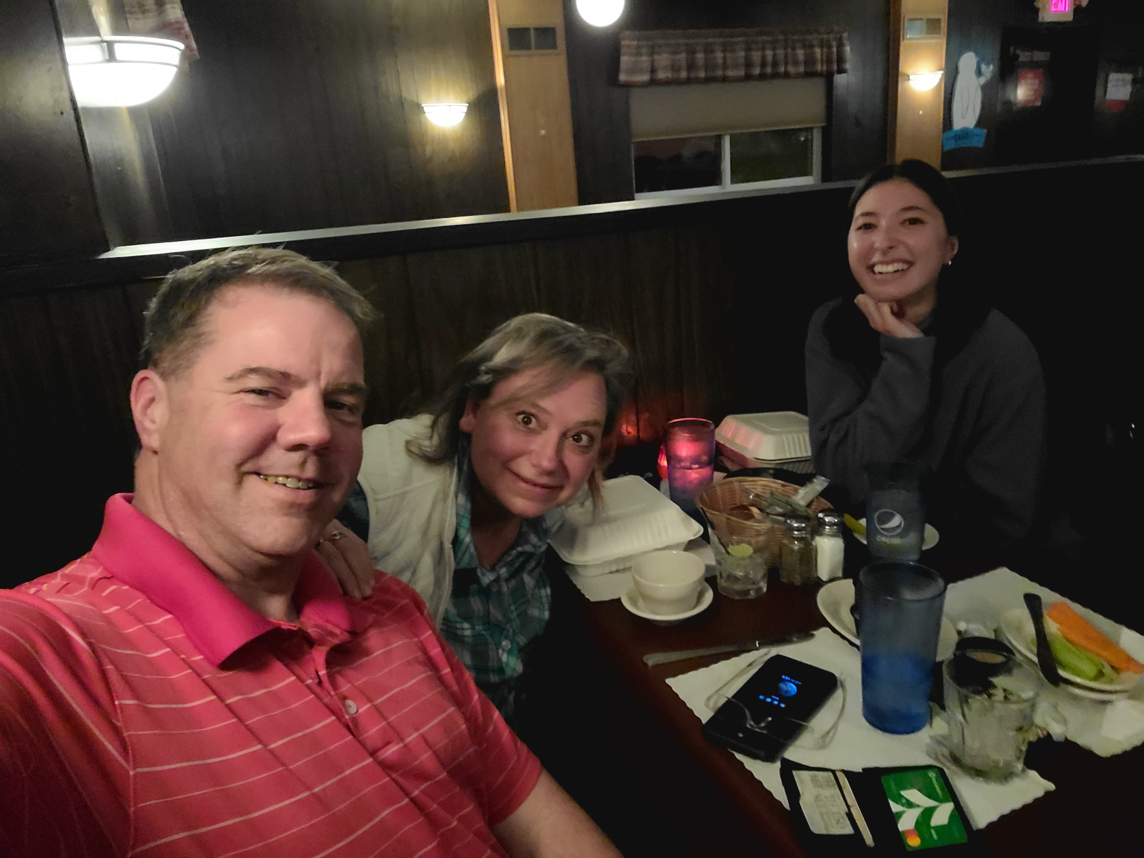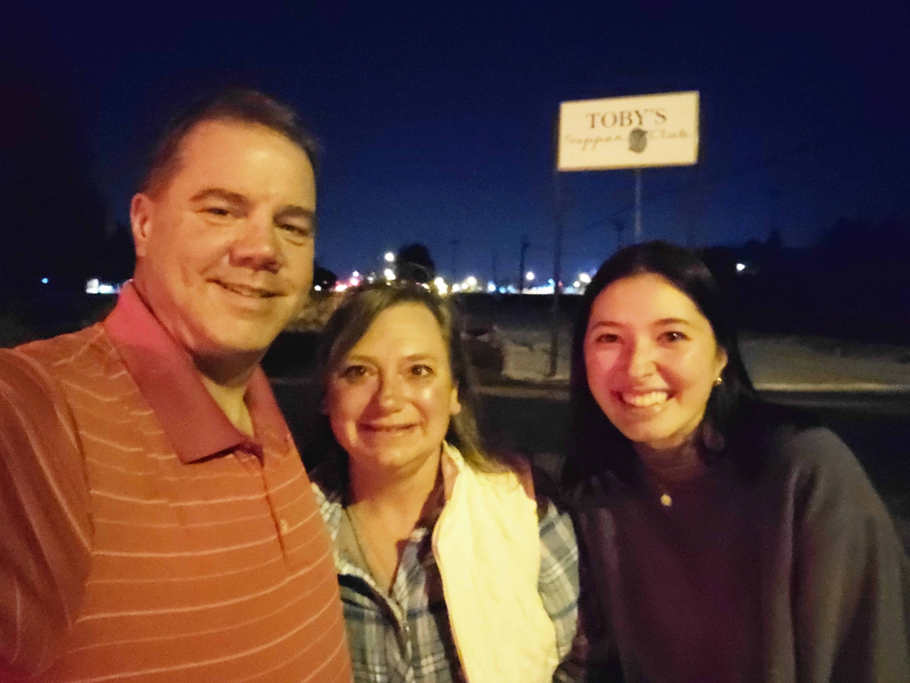 We got our relish tray and were also treated to one of the “Angela-isms” we have come to love so much over the years. This young lady is one of the smartest, most “put together” people I have ever known. She is also rather….. naive and well, not too savvy. When they set the platter down, she kind of looked at it quizzically and asked Tammy, “What are those red and white things by the carrots?” “Angela. those are radishes!” She was completely taken aback! “Can you eat them or are they just for looks?” At this point, we just didn’t know what to say so Tammy just took a bite. Angela actually enjoyed her first taste of the “exotic” radish and we have another Angela story to add to the archive. We also had some awesome cheese curds! Sadly they did not have Prime Rib, so Mike had to settle for a T-bone steak, Tammy had steak and shrimp and Angela had the fish fry. Unfortunately while both of our steaks were done perfectly, both lacked seasoning. A perfectly cooked med-rare and rare steak with no seasoning isn’t very appetizing. Sadly where this supper club delivered so strongly last time were here, this time it was a swing and a miss. 😦 Unfortunately we will not hurry to get back here again. But where the food failed us, the conversation was awesome. We sure do miss our time with Angela!! The evening was too soon done and we were taking Angela back to her apartment. Bitter sweet to have to say goodbye again, but we are sure we will see her sooner than we did between now and the last time.