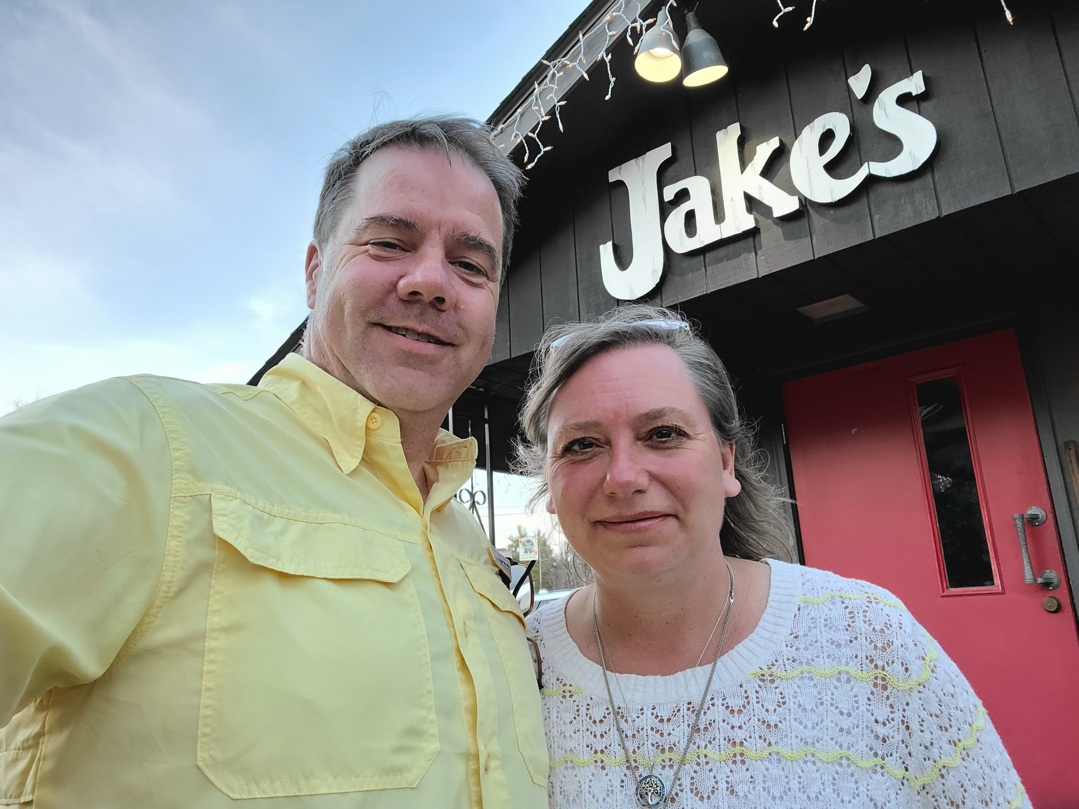We did still enjoy a #SupperClubSaturday dinner at one of our old favorites — Jake’s Supper Club. We have been here many times. First with Tammy’s parents for some family celebration, then for Senior Prom, then several of our own family celebration and taking pictures for our kids Proms. Last time we were here however we got stuck at a table in the bar and the food was not that great. This time, thankfully, we got a nice window table with a view of the Red Cedar River. We walked down on the deck by the river and grabbed a couple pictures before we left.