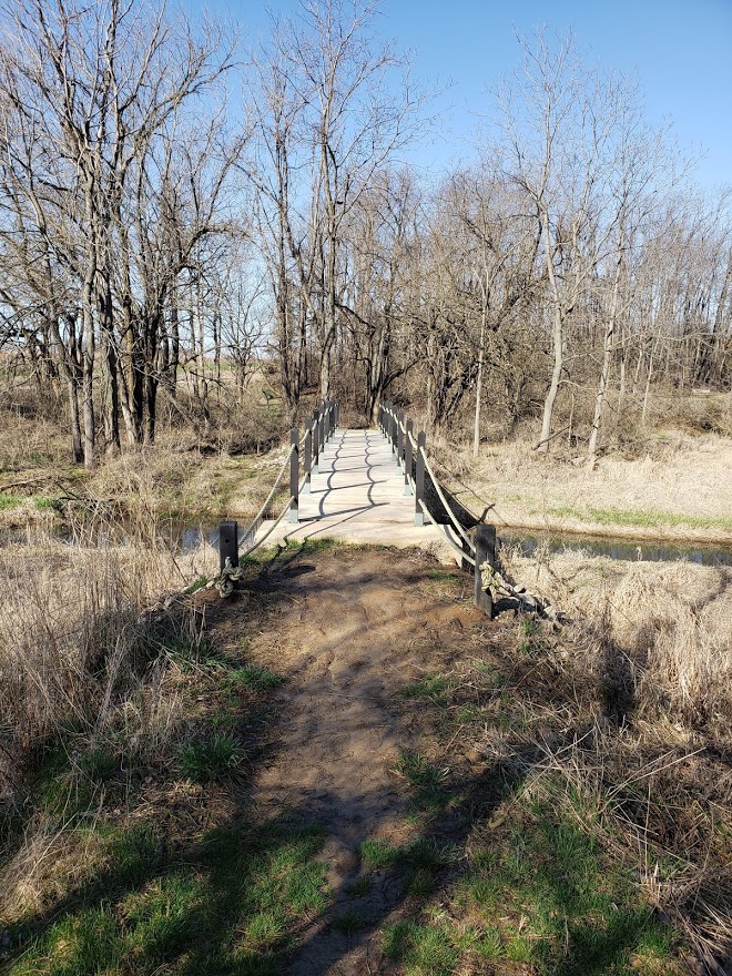 There were way too many Canada Geese honking for our liking, but that was our only complaint! We hiked in and out and up and down not knowing what we were getting ourselves into. We thought this was going to be a pretty typical hike for us, but boy were we in for a treat. It had been raining for most of the last several days so we knew the trails might be a little muddy, but one thing we were not prepared for was the streams and creeks that cover this park. The first one we encountered was a simple bridge crossing.