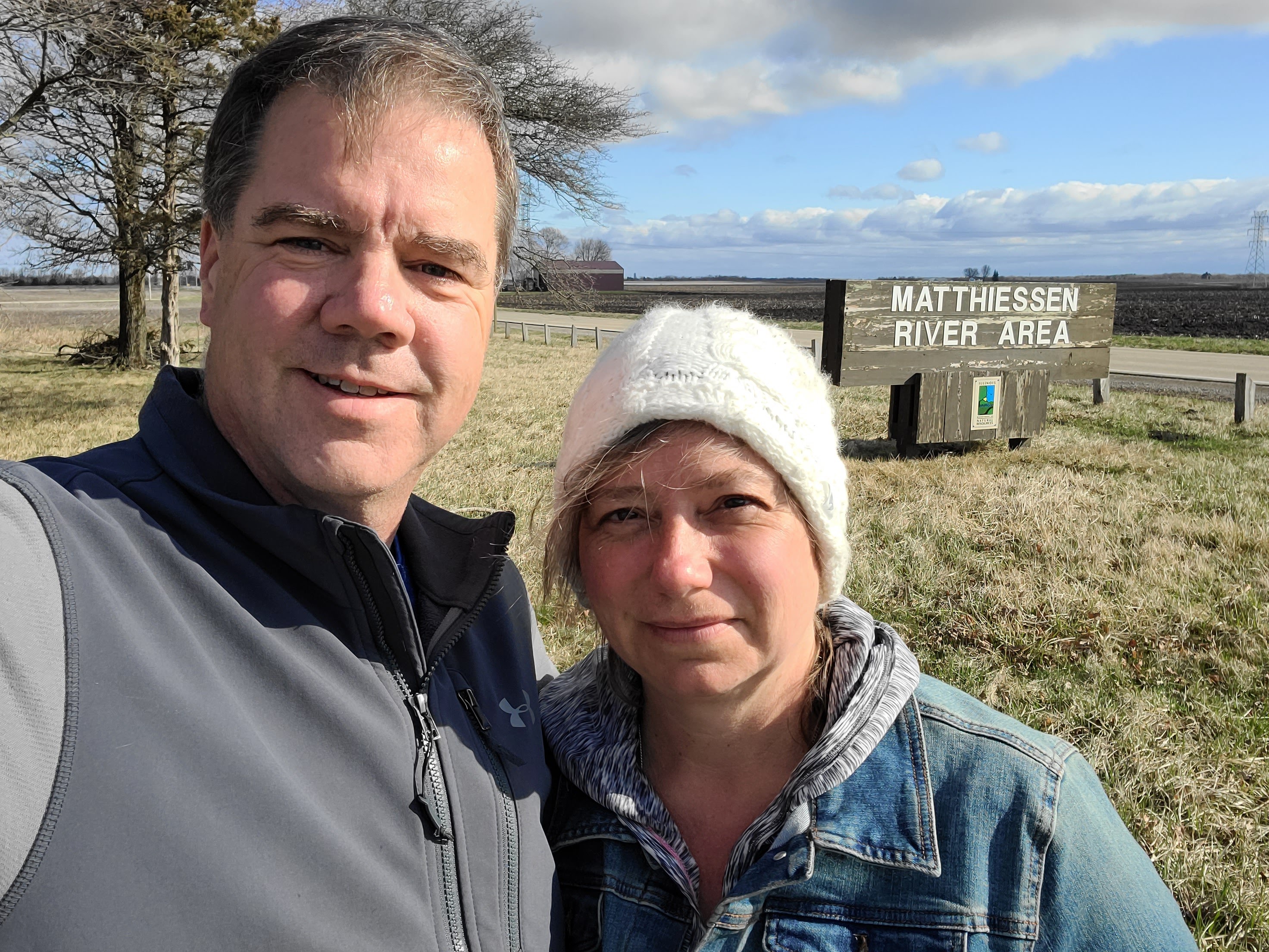 We were off to Illinois (yes, that border) for another dentist appointment for Mike in Bloomington. He COULD get a dentist in Eau Claire now that he has been working at home for a year, but it is a good excuse to take our ‘splorin’ out of state and see some of his “people.” While there we enjoyed meeting up with some of the hotel staff, work people and walking some of the trails Mike used to walk daily when he would spend half his week there. AND being down in the Land of Lincoln also gives us new venues for Splorin’! Originally, the plan Mike was working on was going to involve heading to way southern Illinois and hiking Garden of the Gods in the Shawnee National Forest. But the more we looked at that plan, it was a 4.5 hour drive just to get there (and obviously 4.5 hours back) — a little bit too much car time to have a good day Splorin’especially after the 5.5 hr car trip to get to Bloomy. Mike came up with a new plan, and thankfully so because it turned out to be a “top five” hike for us! On the way back to God’s Country, we also got to visit a park that we tried to visit last time we were here; it was a good trip south of the border!