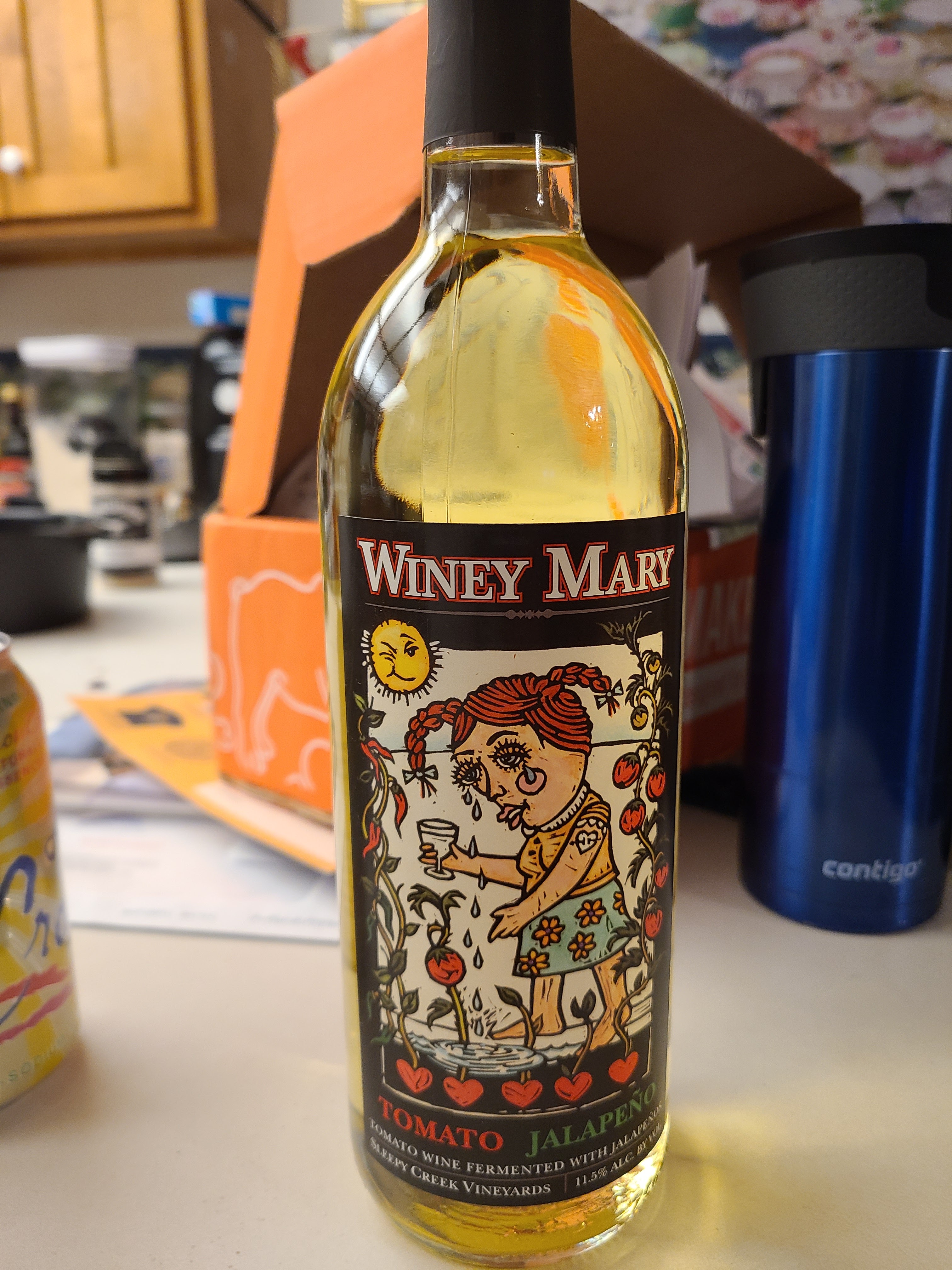 On the way early this morning, Mike had mentioned that we might have some time to fill in between hiking and #SupperClubSaturday and that maybe there would be a winery somewhere around where we were going to be eating. Tammy heard that and quickly found Sleepy Creek Winery and also found out that they made something called “Winey Mary” wine. What is “Winey Mary” wine? They describe it as “This will make you re-think wine…and your life. Tomatoes and Jalapenos were fermented like any other wine but the result is a white wine that tastes like a very light Bloody Mary.” Mike, of course, was skeptical but we arrived at the winery with enough time to do a tasting and have a glass of wine so we got a tasting of 6 of their wines. A couple of the reds were interesting — but the Winey Mary stole the show. The wine by itself has the aroma of tomato leaves but the flavor and a little bit of the bite of jalapeños. It was quite interesting! They then had you try it with a little of their bloody mary mix splashed in and sure enough — tastes just like a bloody mary. We liked it enough to get 2 bottles. We had Easter coming up soon and that would make an interesting morning change up for a bloody mary!!! (BTW — it was awesome to have just by itself, no bloody mary mix needed. Drinking a whole glass, it had the zip and flavor that you would not expect out of a white wine).
