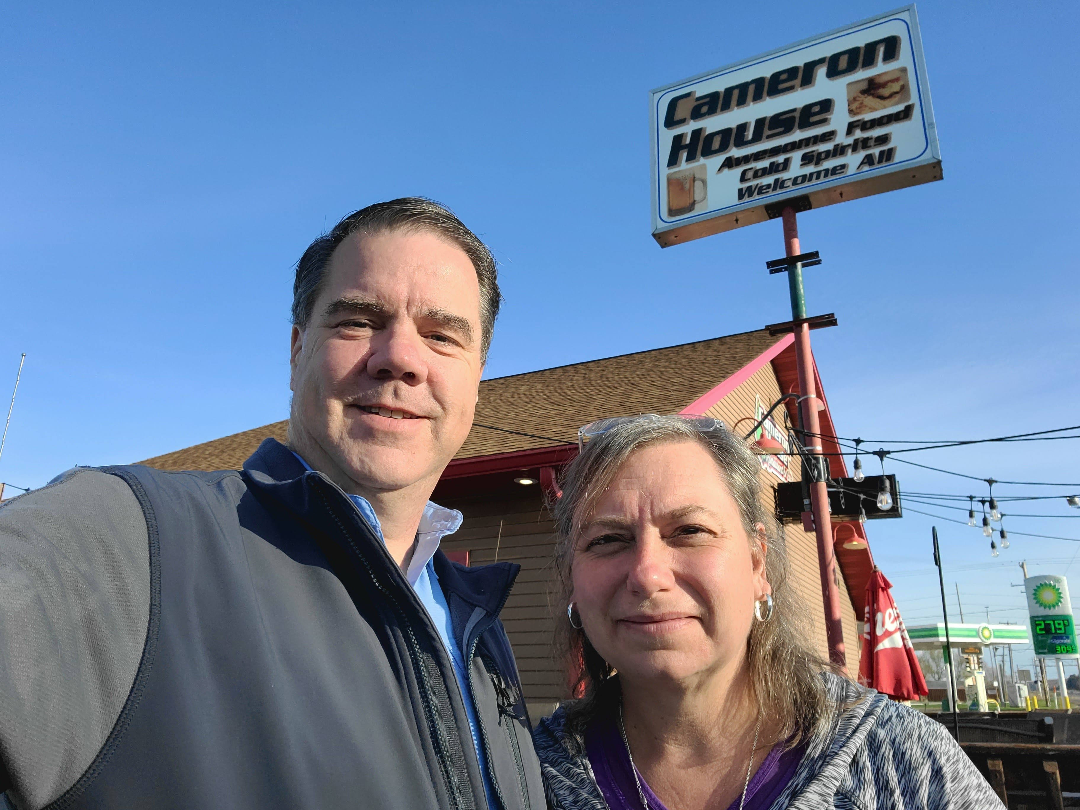 We pulled up to see the parking lot almost completely full!! Oh oh! But so many times that can be deceiving. We’ve encountered times where there are full parking lots but empty supper clubs as well as the opposite. This time was a full parking lot meant a full supper club. We walked into the bar to see that every table and every stool at the bar was occupied. We walked through the bar to the dining area to see that there were still a couple of tables left open, two two-seaters and a 6 person table. We took one of the two person tables by a window looking out at the deck. We had already discussed that it was a little chilly to sit outside, but we looked out the window and saw two ladies sitting out at a picnic table with a little baby enjoying their food — yep, we are apparently wimps! 😉 Once again the Prime Rib was less than spectacular. Once again, not bad, but certainly not good. The au jus just seemed like colored water. Oh well, maybe better next week!!! Tammy had the “not Prime Rib” again and really enjoyed it! This place really reminded us of the Old Abe Supper Club — more of a bar than supper club, but still a supper club!! Can’t wait to see where next week’s #SplorinSaturday takes us!!!!!!!