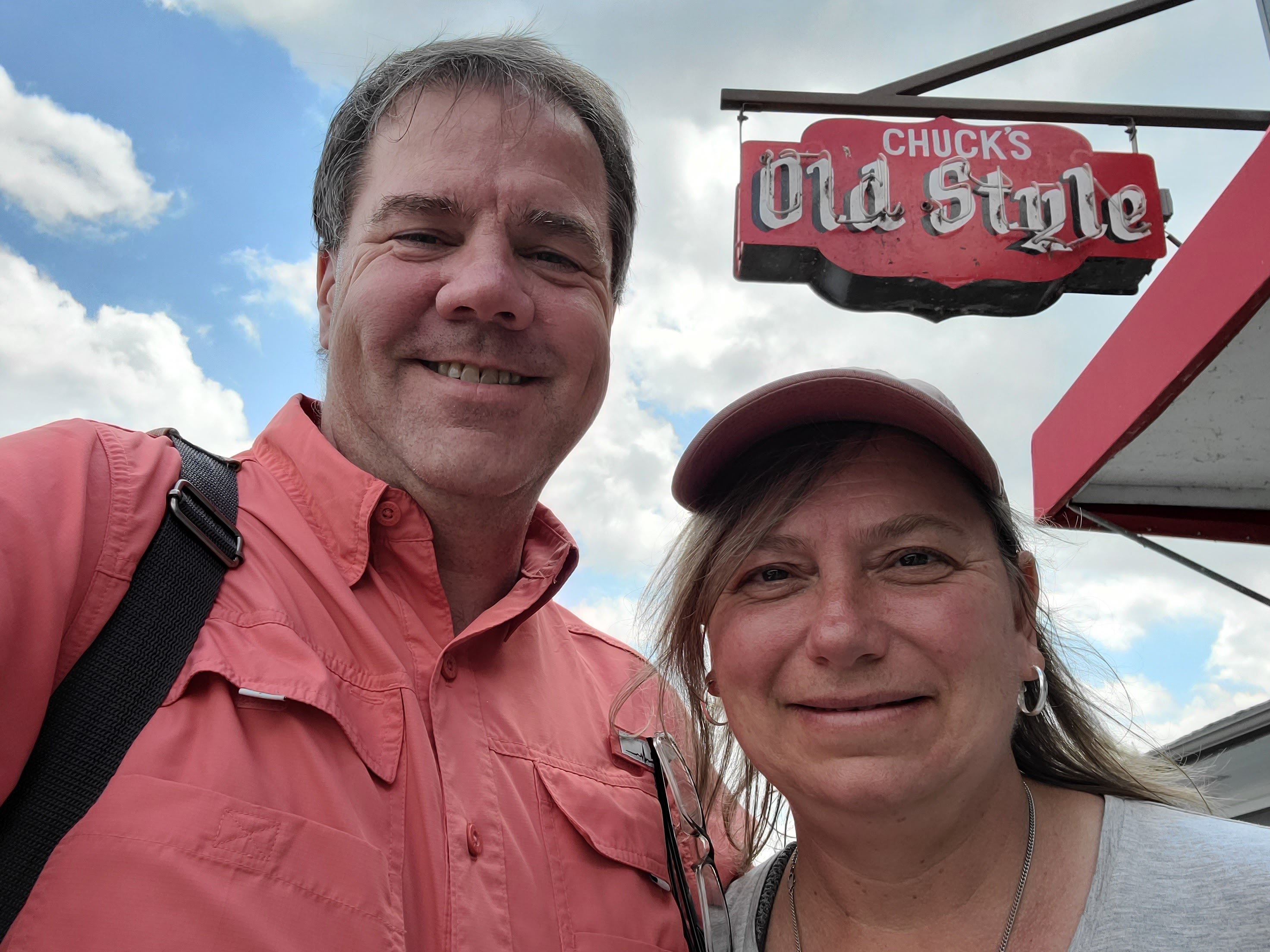 We left the winery with plenty of time to make to the Possum Trot Supper Club in Oakwood, IL. “Possum Trot”? Yep, “Possum Trot”!!!! Before we talk about the supper club itself, we get so many people who ask us how we find our supper clubs and aren’t we afraid of picking a “bad one”? First and foremost — Google is our friend (occasionally friends IRL will also recommend places), searching for places is key. Once we have a general area in which we will be done Splorin’ we start looking. Mike uses Google Maps, while Tammy just uses straight out Google search. But we start with a list and start narrowing it down by reviews and websites and Facebook. And we have also been known to use websites like http://www.wisconsinsupperclubs.com. And we also have 2 Supper Club posters hanging up in our living room. Supper Clubs are serious business for for us! Sometimes they just jump out at you like “Possum Trot”. We have been known to pick places just based on the name! In this case (as in most) it is a combination of reviews, location, and whether or not they have certain food (prime rib is must for Mike, Tammy usually likes scallops; a relish tray is an immediate move to the front of the line, sometimes popovers). Then there is atmosphere. We like the “old fashioned Wisconsin supper club” ambiance. This usually means a nice big bar, big booths, a salad bar (pre-pandemic), dark wood walls, a candle on the table, etc. About being a afraid of picking a bad one? It does happen, but thankfully rarely. When it does, it reminds us that it is much more about the company that you have with you at the table than the food or drinks. Those just enhance the supper club meal, it really is about who you are there with!