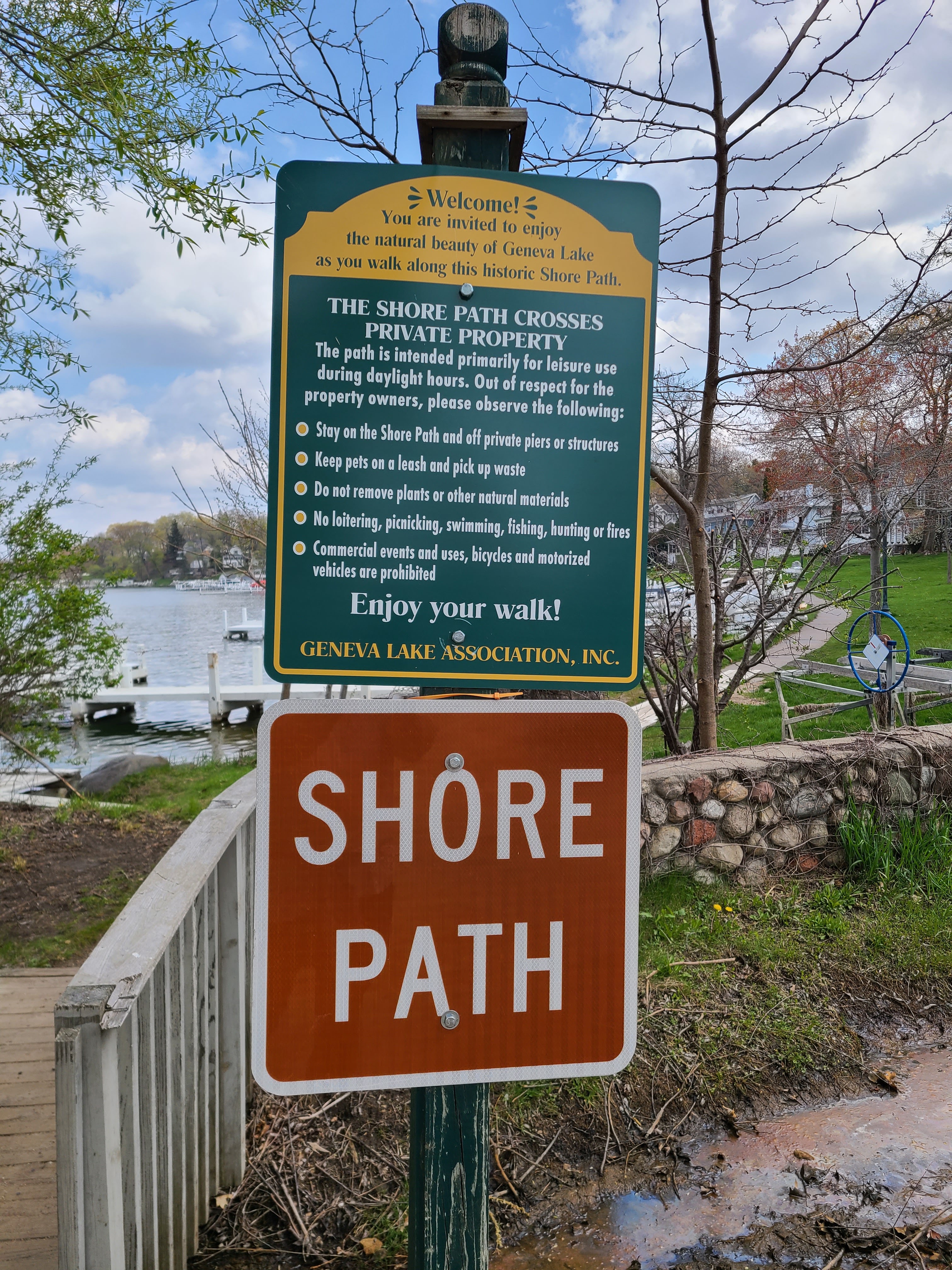 The shore path has been used by indigenous people dating back to 2500 B.C. Up until the early 1800s it was used for travel between villages along the short of the lake. Early settlers wanted this path to remain available to the general public and decreed that 20 feet leading to the shoreline be preserved as public domain. It is up to the homeowners to maintain the path on their property. Some go all out: paved paths, stone or decorated brick paths, some just have a dirt path. Others just force you to walk across their lawn. The shore path is mostly on private property, so you are advised to remain solely on the trail and not venture into peoples yards/gardens/piers/boathouses/etc. If you would like more information on the shore path, Visit Lake Geneva has a very good article that provides a lot of good information on the Geneva Lake Shore Path. It really is a unique experience.