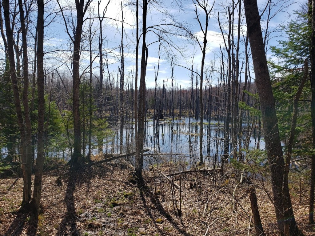 Mike had noticed on the maps on the far backside of this hike we were going to pass yet another little lake. He didn’t know how close we would come to this lake so it was quite a surprise when we came along the shore and found a HUGE beaver dam holding the lake up. Both of us had seen beaver dams before, but not quite from this angle. We were literally walking below the beaver dam where a little bit of water was trickling out. We stood where our eyes were exactly level with the water in the dammed up pond and our feet were below it. It looked like an infinity pool. It was amazing!!! This dam has been here for a VERY long time — long enough for the lake to show up on Google maps as something permanent and not just a temporary water feature.