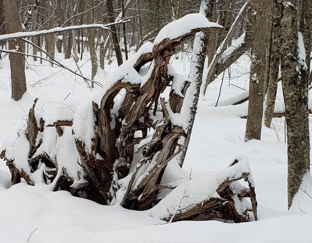 We have lived in Eau Claire for 22 years and NEVER knew this existed. We have driven over it hundreds of times and you do not know that the tunnel is even there. Just through the tunnel we came across an upturned tree’s root system that presented a very pretty sight covered in the fresh snow.