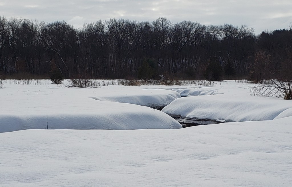 We made our way to what appeared to be an open field, but was most likely more of a wetlands that was a boundary for the creek. But with it completely covered in snow with the creek winding through the middle it was one of nature’s beauties that you only occasionally get to witness.