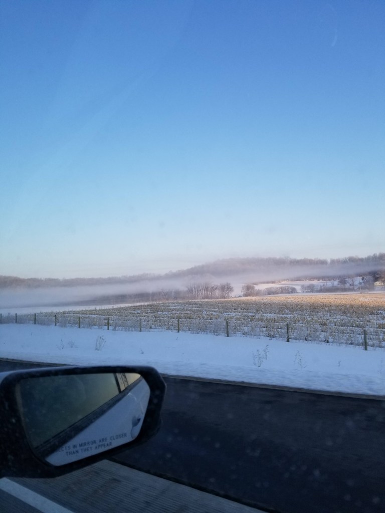 Our first stop of the day would be AJ’s Northside Cafe in Baldwin, WI. The drive from Eau Claire to Baldwin — about 45 miles — was stunningly gorgeous with freezing fog on all the trees and layers of fog floating at different levels along the way. It was really strange in that we would go through locations where there was frozen fog over everything and a mile later there wasn’t any. Overall very stunning.