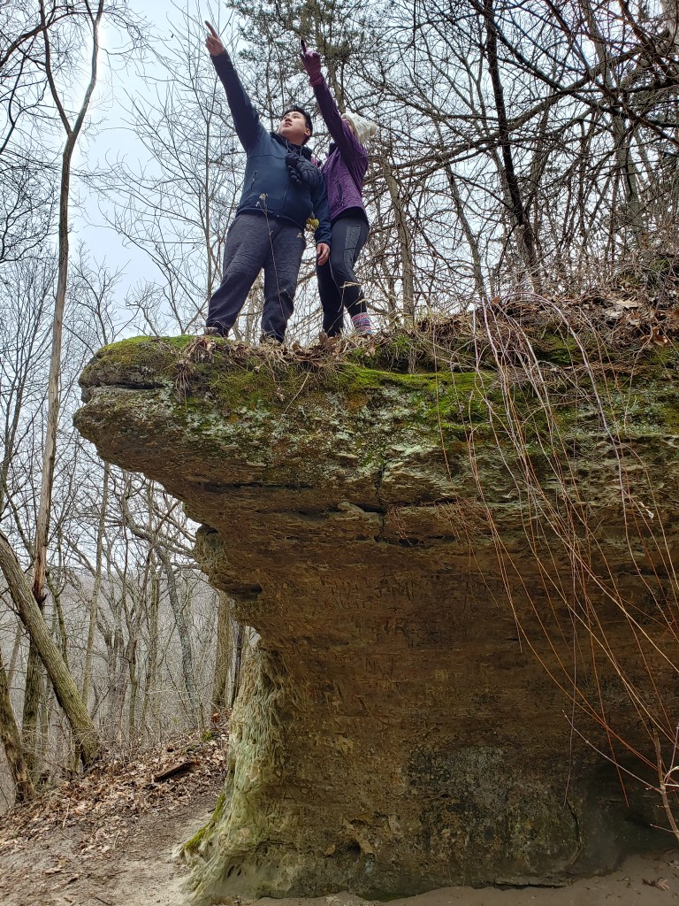 Tower Hill State Park is another park that is closed in the winter, but you can park and walk in and explore. That is what we did. While Mike and Tam were trying to work the kinks out of their backs, legs and feet, it didn’t take long for Carrie and Michael to begin their shenanigans of climbing over everything.
