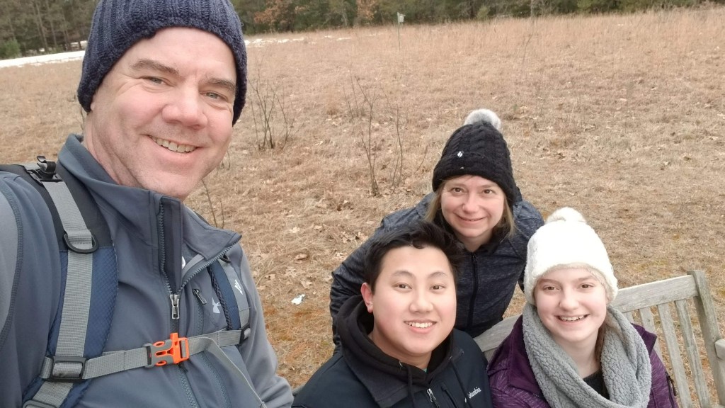 The plan then had us hiking on the West Savannah Loop which appeared on the map to be primarily a snowshow trail, we would find out shortly why…. (ominous foreshadowing). We made our way along the trail to where that loop was supposed to go around a big opening that was surrounded by woods. The only problem was that it was ALL marsh grass. The trail led us up to the edge and then, just….disappeared. It was pretty obvious that since this was supposed to be a snowshoeing trail it was expected that you could follow the trail in the snow, but with just marsh grass, there wasn’t really even anything packed down to follow. Mike did his best to find us a path through, but even though it wasn’t wet, walking through the grasses that were about a foot deep wasn’t much fun. We made our way around most of it and decided to head off to the edge where hopefully we would be back to hiking on solid ground.