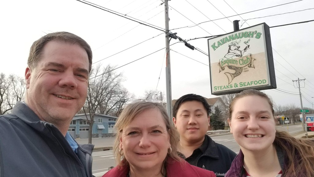 From here, we made our way back to the van and we were done with hiking for the day. It was time to take off for #SupperClubSaturday. We decided on a place in Madison that Mike and Tammy had planned on taking their bonus daughter Angela last time we were in the area (but we couldn’t because it was raining/snowing that day 😦 ). We found our way to Kavanaugh’s Esquire Club. It was supposed to open at 4PM and we arrived about 4:20. The lot was completely empty — it sure looked like they were closed. But, we saw the sign saying they were open we were just really early for dinner (like usual on our Splorin’ Saturdays).