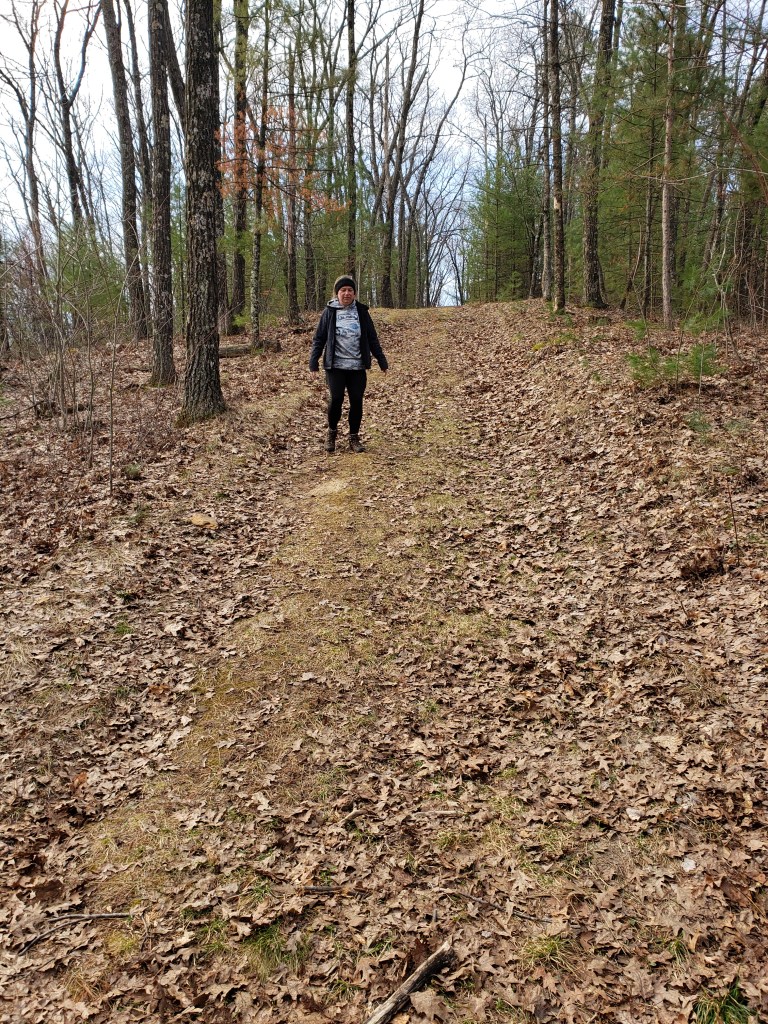 We started on the Norway Pine Trail and **immediately** began a steep climb. As we’ve said before, we are not afraid of hills — well, we are no longer afraid of hills. Way back in our early days of Splorin,’ Tammy used to have some choice words as she made her way to the top — now we both just buckle down and climb and “enjoy” our increased heart rates and shortness of breath. We recover very quickly now — all we need is a short stretch of level ground after a climb to get right again (more quiet ominous foreshadowing music).